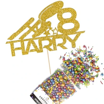This Cakeshop Cake Decorating Pack includes 1 x 480gsm Double Sided Glitter Card Topper & 25g Cake Sprinkles (option to upgrade to 50g while customising) - perfect for your party or celebration! Cakeshop Sprinkles are Vegan, Gluten Free, Lactose free and Nut Free, all while looking amazing in striking colours and an assortment of sizes for a truly 'premium' finish Size: Sprinkles pack (perfect for a large cake) 25g, you can also upgrade to a 50g pack when customising your topper | Glitter Topper Approx 152mm (6") x 175mm (7") Toppers make a great keepsake to remember this special occasion forever, often our customers will remove the support sick and use on bedroom doors (until their next birthday!) Cakeshop Glitter Toppers are made from 480gsm premium double sided glitter card, select which colour topper you'd like then click 'Customise' to add your text personalisation and choose your sprinkles Choose from either Metallic or Rainbow sprinkles and upgrade to 50g packs in the 'Customise' section, so that you can match your sprinkles to your theme (or save them for next time!) All 'Cakeshop Cake Decorating Packs' come beautifully packed with simple to understand instructions so that you can quickly turn any cake, home made or shop bought (we wont tell!) into the perfect cake After you have added your custom information in the 'Customise Now' section our designers hand make your topper in the same font, style and topper colour as the design you've selected Cakeshop have been making the highest quality Cake Decorations since 2011 - we have thousands of design options available in our store for every occasion and theme (click 'visit the cakeshop store' above) It should go without saying - but Glitter Card toppers are flamable! We therefore recommend using only Acrylic toppers alongside candles for safety