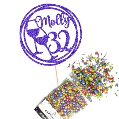 This Cakeshop Cake Decorating Pack includes 1 x 480gsm Double Sided Glitter Card Topper & 25g Cake Sprinkles (option to upgrade to 50g while customising) - perfect for your party or celebration! Cakeshop Sprinkles are Vegan, Gluten Free, Lactose free and Nut Free, all while looking amazing in striking colours and an assortment of sizes for a truly 'premium' finish Size: Sprinkles pack (perfect for a large cake) 25g, you can also upgrade to a 50g pack when customising your topper | Glitter Topper Approx 152mm (6") x 175mm (7") Toppers make a great keepsake to remember this special occasion forever, often our customers will remove the support sick and use on bedroom doors (until their next birthday!) Cakeshop Glitter Toppers are made from 480gsm premium double sided glitter card, select which colour topper you'd like then click 'Customise' to add your text personalisation and choose your sprinkles Choose from either Metallic or Rainbow sprinkles and upgrade to 50g packs in the 'Customise' section, so that you can match your sprinkles to your theme (or save them for next time!) All 'Cakeshop Cake Decorating Packs' come beautifully packed with simple to understand instructions so that you can quickly turn any cake, home made or shop bought (we wont tell!) into the perfect cake After you have added your custom information in the 'Customise Now' section our designers hand make your topper in the same font, style and topper colour as the design you've selected Cakeshop have been making the highest quality Cake Decorations since 2011 - we have thousands of design options available in our store for every occasion and theme (click 'visit the cakeshop store' above) It should go without saying - but Glitter Card toppers are flamable! We therefore recommend using only Acrylic toppers alongside candles for safety