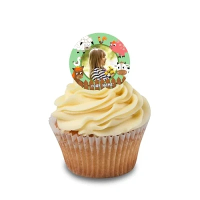 Cakeshop Cupcake Personalised Edible Cake Toppers Farm Animal Friends Custom Text or Name For Birthdays & Celebrations Multiple Shapes Sizes Icing Wafer Paper Options