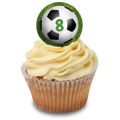 Cakeshop Cupcake Personalised Edible Cake Toppers Football Theme Personalise With Your Custom Name & Age For Birthdays Celebrations Icing Wafer Paper Options