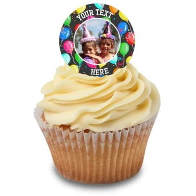Cakeshop Cupcake Personalised Edible Cake Toppers With Balloon Border & Text Personalise Custom Image For Birthdays Celebrations Icing Wafer Paper Options