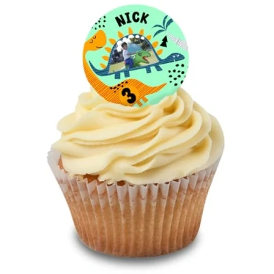 Cakeshop Cupcake Personalised Edible Cake Toppers With Cute Blue & Orange Dinosaur Personalise Your Custom Image Text For Birthdays Celebrations Icing Wafer Paper Options