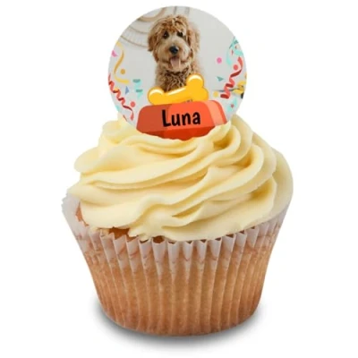 Cakeshop Cupcake Personalised Edible Cake Toppers With Dog Bowl & Bone Personalise Custom Image Name For Birthdays Celebrations Icing Wafer Paper Options