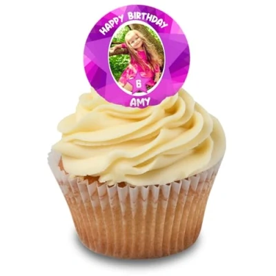 Cakeshop Cupcake Personalised Edible Cake Toppers With Pink Star Design & Text Personalise Custom Image For Birthdays Celebrations Icing Wafer Paper Options
