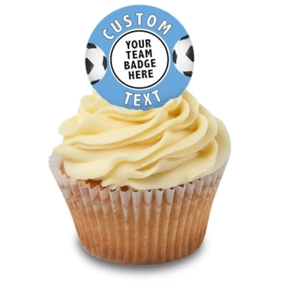 Cakeshop Cupcake Personalised Edible Cake Toppers With Sky Blue Football Border Personalise Your Custom Image & Name For Birthdays Celebrations Icing Wafer Paper Options