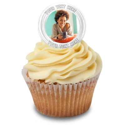 Cakeshop Cupcake Personalised Edible Cake Toppers With White Border & Text Personalise Custom Image For Birthdays Celebrations Icing Wafer Paper Options