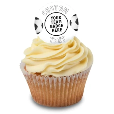 Cakeshop Cupcake Personalised Edible Cake Toppers With White Football Border Personalise Your Custom Image & Name For Birthdays Celebrations Icing Wafer Paper Options