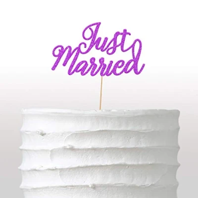 Cakeshop Just Married Glitter Cake Topper, Wedding Topper Decoration Double Sided 400gsm Card, Choice 14 of Colours and Loads Styles (Purple)
