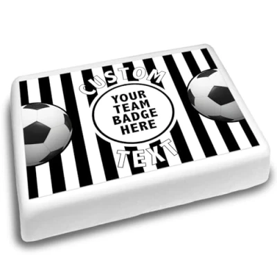 Cakeshop Landscape Personalised Edible Cake Topper With Black & White Stripe Football Border Custom Image Name Birthdays Celebrations Multiple Shapes Sizes Icing Wafer Paper Options