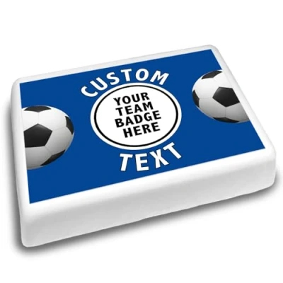 Cakeshop Landscape Personalised Edible Cake Topper With Dark Blue Football Border Personalise Custom Image & Name Birthdays Celebrations Multiple Shapes Sizes Icing Wafer Paper Options
