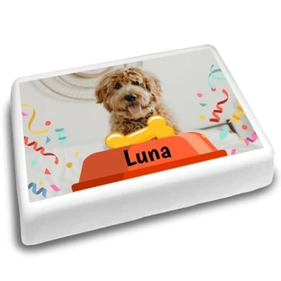 Cakeshop Landscape Personalised Edible Cake Topper With Dog Bowl & Bone Personalise Custom Image Name For Birthdays Celebrations Multiple Shapes Sizes Icing Wafer Paper Options