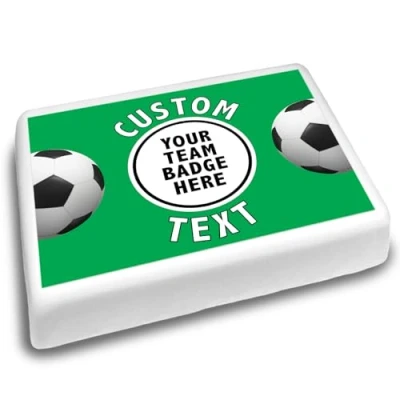 Cakeshop Landscape Personalised Edible Cake Topper With Green Football Border Personalise Custom Image & Name For Birthdays Celebrations Multiple Shapes Sizes Icing Wafer Paper Options