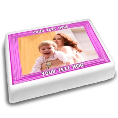 Cakeshop Landscape Personalised Edible Cake Topper With Pink Border & Text Custom Image For Birthdays Celebrations Multiple Shapes Sizes Icing Wafer Paper Options