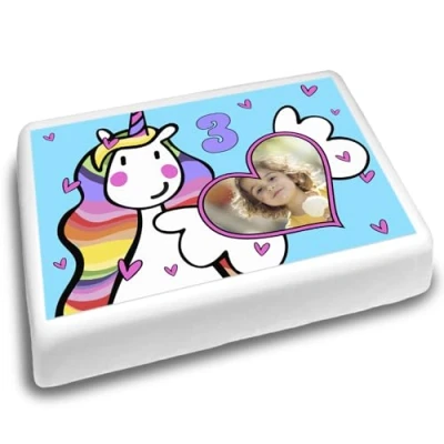 Cakeshop Landscape Personalised Edible Cake Topper With Unicorn & Love Heart Personalise Custom Image Age For Birthdays Celebrations Multiple Shapes Sizes Icing Wafer Paper Options