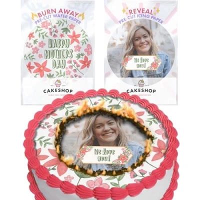 Cakeshop Mothers Day Burn Away Edible Cake Topper Pack 1 x Icing Sheet & Wafer Personalise With Your Custom Image Text for Multiple Shapes Sizes to Choose