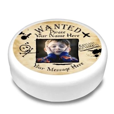 Cakeshop Round Personalised Edible Cake Topper Pirate Wanted Reward Poster Custom Image & Text For Birthdays Celebrations Multiple Shapes Sizes Icing Wafer Paper Options