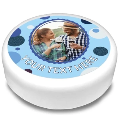 Cakeshop Round Personalised Edible Cake Topper With Blue Circle Border & Text Personalise Custom Image For Birthdays Celebrations Multiple Shapes Sizes Icing Wafer Paper Options