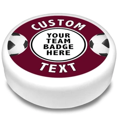 Cakeshop Round Personalised Edible Cake Topper With Claret Football Border Personalise Custom Image & Name For Birthdays Celebrations Multiple Shapes Sizes Icing Wafer Paper Options