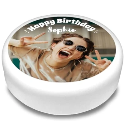 Cakeshop Round Personalised Edible Cake Topper With Custom Text Image & For Birthdays Celebrations Multiple Shapes Sizes Icing Wafer Paper Options