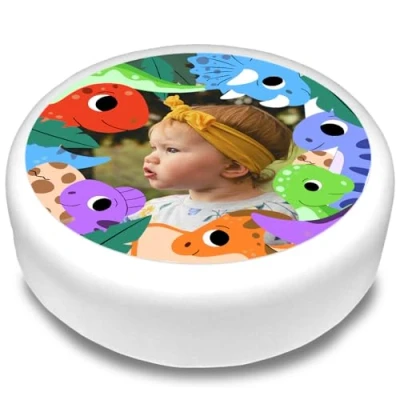 Cakeshop Round Personalised Edible Cake Topper With Cute Colourful Dinosaurs Border Personalise Custom Image For Birthdays & Celebrations Multiple Shapes Sizes Icing Wafer Paper Options
