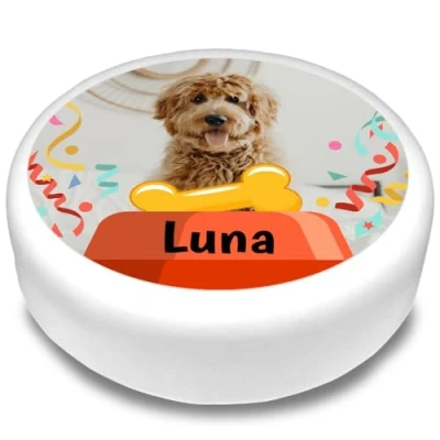 Cakeshop Round Personalised Edible Cake Topper With Dog Bowl & Bone Personalise Custom Image Name For Birthdays Celebrations Multiple Shapes Sizes Icing Wafer Paper Options