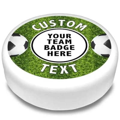 Cakeshop Round Personalised Edible Cake Topper With Grass Football Pitch Border Personalise Custom Image & Name For Birthdays Celebrations Multiple Shapes Sizes Icing Wafer Paper Options