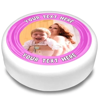 Cakeshop Round Personalised Edible Cake Topper With Pink Border & Text Custom Image For Birthdays Celebrations Multiple Shapes Sizes Icing Wafer Paper Options