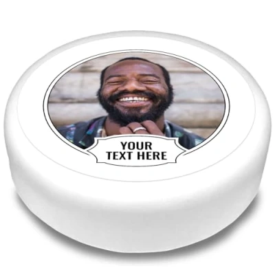 Cakeshop Round Personalised Edible Cake Topper With White Border & Text Banner Custom Image For Birthdays Celebrations Multiple Shapes Sizes Icing Wafer Paper Options