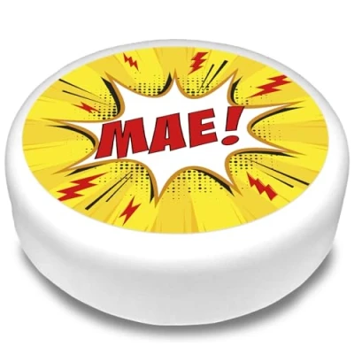 Cakeshop Round Personalised Edible Cake Topper With Yellow Comic Explosion & Red Lightning Bolts Custom Name For Birthdays Celebrations Multiple Shapes Sizes Icing Wafer Paper Options