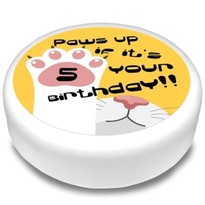 Cakeshop Round Personalised Edible Cake Topper With Yellow & White Cat Paw Text Personalise Custom Age For Birthdays Celebrations Multiple Shapes Sizes Icing Wafer Paper Options