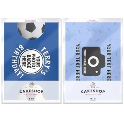 Cakeshop Royal Blue Football Team Theme Birthday Edible Burn Away Cake Topper Pack 1 x Icing Sheet & Wafer Personalise With Your Custom Image and Text Multiple Shapes Sizes