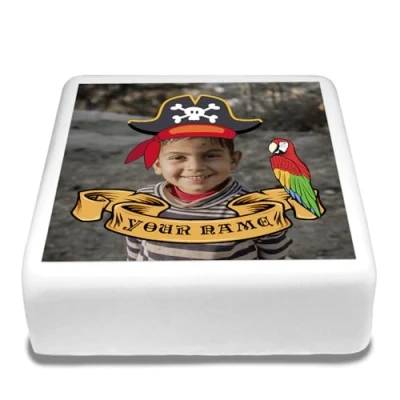 Cakeshop Square Personalised Edible Cake Topper Pirate Hat Photo Upload Custom Image & Name For Birthdays Celebrations Multiple Shapes Sizes Icing Wafer Paper Options