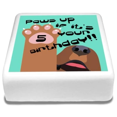 Cakeshop Square Personalised Edible Cake Topper With Blue & Brown Dog Paw Text Personalise Custom Age For Birthdays Celebrations Multiple Shapes Sizes Icing Wafer Paper Options