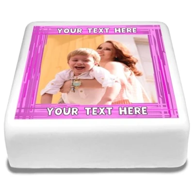 Cakeshop Square Personalised Edible Cake Topper With Pink Border & Text Custom Image For Birthdays Celebrations Multiple Shapes Sizes Icing Wafer Paper Options