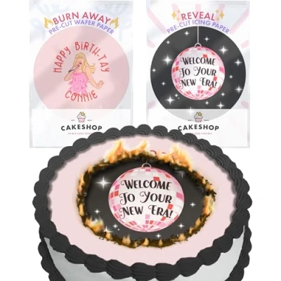 Cakeshop Taylor Swift Burn Away Edible Cake Topper Pack 1 x Icing Sheet & Wafer Era Birthday Theme Personalise With Your Custom Name Text Choose Shapes Sizes