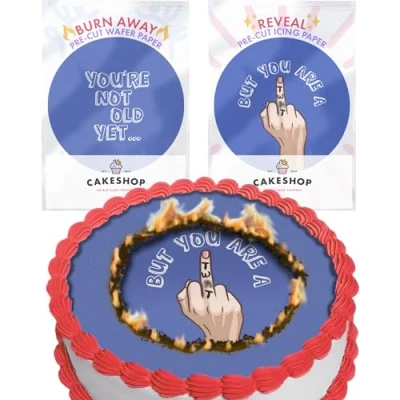 Cakeshop You're Not Old Yet Rude Burn Away Edible Cake Topper Pack 1 x Icing Sheet & Wafer Birthday Joke For Him/Her Multiple Shapes Sizes to Choose