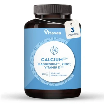 STRONG BONES & MUSCLES SUPPORT: Each Vitavea tablet delivers 500mg of calcium, 63.75 mg of magnesium, 5 mg of zinc, and 5 µg of vitamin D, working together to promote healthy bones, muscle function, and joint comfort. ENERGY & IMMUNE BOOST: With a synergistic blend of 7 active ingredients, this high-strength formula supports normal metabolism, boosts energy levels, and strengthens your immune system, helping you stay active and resilient. ADVANCED 7-IN-1 FORMULA: Developed by nutrition experts, this complete supplement includes Calcium, Magnesium, Zinc, Vitamin D, Copper, Manganese, and Selenium for comprehensive bone, muscle, and immune support. 3-MONTH SUPPLY - DAILY WELLNESS: Just 1 tablet a day provides you with essential nutrients to keep your bones strong and muscles functioning optimally. 90 tablets in one bottle give you a full 3 months of continuous support. HIGH QUALITY & FREE FROM ADDITIVES: Our supplement is gluten free, lactose free, and contains no artificial flavours, sugars, gelatin, or pesticides. Vitavea guarantees top quality with rigorous testing to ensure safety and efficacy.