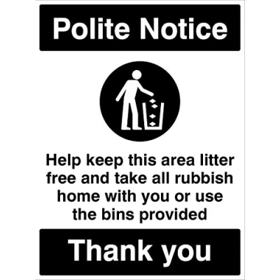 Caledonia Signs 15492K Help keep this area litter free Please take all rubbish home with you or use the bins provided Rigid PVC Safety Sign, 300.0 mm*400.0 mm*1.0 mm