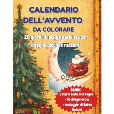 Calendario dell’Avvento da Colorare per Bambini 6 10 Anni: Attività di Natale con disegni, giochi e curiosità su Babbo