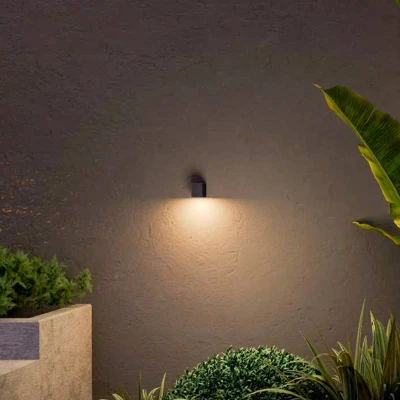 Lights.coCuboid LED outdoor wall light with GU10 socket, downlight This outdoor wall light is used for modern accent and orientation lighting on facades and entrance areas. The aluminium housing is designed in a simple cuboid shape and has a monochrome finish. Behind a glass cover on the underside is a GU10 socket that can be fitted with a bulb of your choice - IP code: IP54