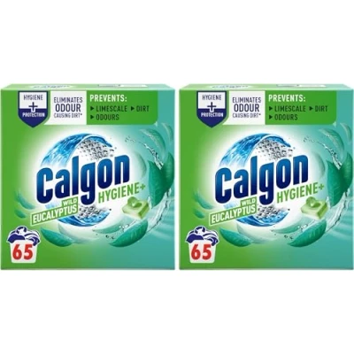 Calgon Hygiene Plus Washing Machine Cleaner & Limescale Remover, Water Softener Tablets, Unscented, 65 Tablets, Pack of 2 (130 Tabs Total)
