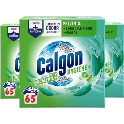 Calgon Hygiene Plus Washing Machine Cleaner & Limescale Remover, Water Softener Tablets, Unscented, 65 Tablets, Pack of 3 (195 Tabs in Total)