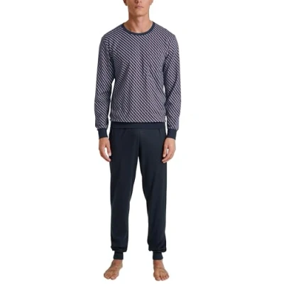 The pyjamas from the Relax Imprint series from CALIDA impress in terms of comfort thanks to the soft, smooth single jersey quality made of high-quality cotton The pyjamas consist of a top and trousers with fabric-covered elastic waistband The men's pyjamas combine plain colours with pattern and thanks to the single jersey quality made of high-quality cotton impresses with a beautiful, smooth surface and great wearing comfort The pyjamas are made from 100% cotton Oeko-Tex certified