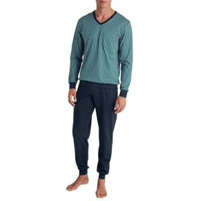 CALIDA Relax Imprint Men's Long Pyjamas 100% Cotton Trousers with Fabric Covered Elastic Waistband, Pond Green, 40