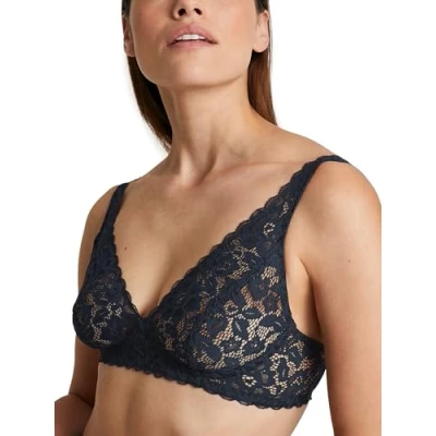 CALIDA Women's Natural Comfort Lace Bra, Semi Sheer, Dark Blue, 34A