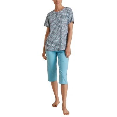 CALIDA Women's Spring Nights Pajama Set, Opaque, Blue Topaz, 36 38