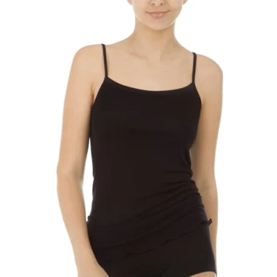 Calida Women's True Confidence Spaghetti Top Vest in Virgin Wool and Silk Cooling or Warming Black UK 12