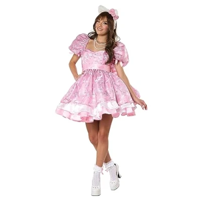 Includes: Dress with attached Pettiskirt, Waistband / Belt with attached Bow, Hello Kitty Headband Women's Large (10-12): Chest 40", Waist 31", Hips 41", Waist 68", Up to 155LBs Hello Kitty Head band comes with attached pink bow and pearl trim. Dress closes in back with zipper closure Officially licensed: Hello Kitty / Sanrio, Manufacturer: California Costumes