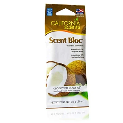 California Scents Power Bloc PB 616 Under Seat Air Freshener, Capistrano Coconut Fragrance Set of 6, Packaged in Easy Tear Open Pouches, Long Lasting Up to 45 Days, Environmentally Friendly, Refreshing Your Car with Fruit