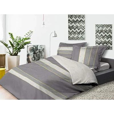 CALITEX 3 Piece Bedding Set, 240 x 220 cm, Bloom, 100% Cotton, Grey, cm